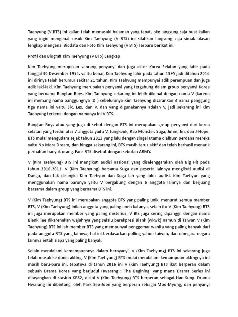 Gambar ini tidak mengikuti pedoman konten kami. Untuk melanjutkan publikasi, hapuslah gambar ini atau unggah gambar lain. Enfp twitter account (all bts members share 1 single twitter. Kim tae hyung doğum tarihi. Berikut biodata v bts lengkap, fakta unik dan perjalanan kariernya di musik boyband bts.